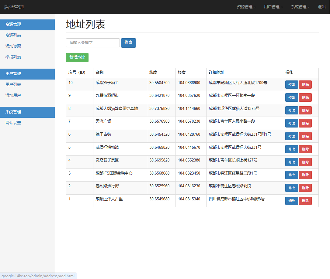 tinkphp实现从地址中随机调取2个地址a和b,然后调用google的地图api实现搜索a到b点导航功能,在当前导航结束后,在从系统里面随机挑选一个地址c,实现从b点地址到c点地址的导航;中间有随机的等待接单时间。整个车辆运行数据为后台命令行运行,前端用户访问的根据时间页面显示模拟汽车实际导航并显示在html地图上。实现多个用户访问看到的车辆运行情况一致。