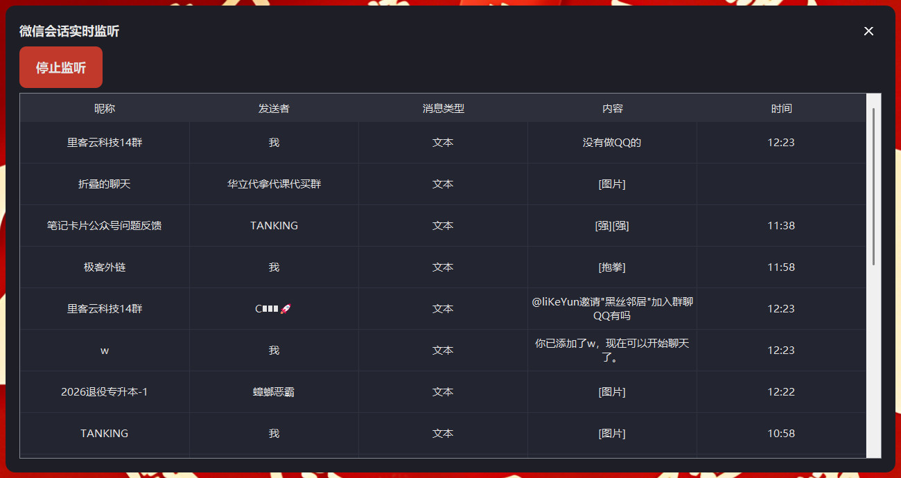 微信电脑版聊天记录监听器最新版微信适配4.1.7.30